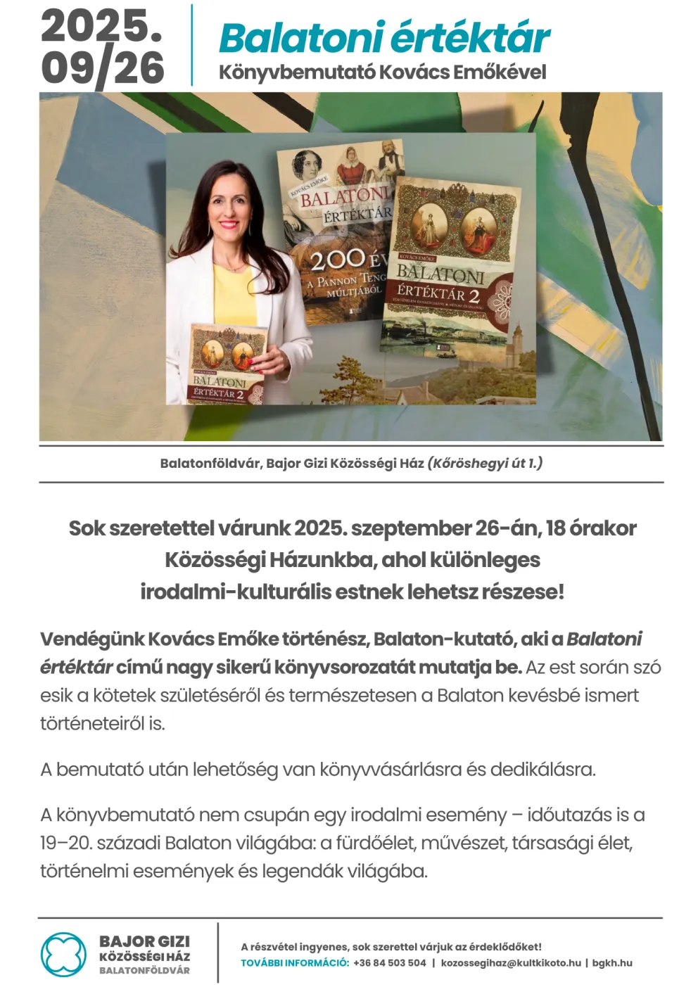 Balatoni Értéktár Könyvbemutató Kovács Emőkével